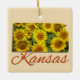 Le Kansas porte le nom de la tribu amérindienne Kansa qui habitait la région à l'origine. Bien que le surnom officiel soit "L'État du tournesol", le Kansas est aussi appelé "L'État libre" et "L'État du blé". En 2015, le Kansas était l'un des états agricoles les plus productifs du pays, produisant de hauts rendements de blé, maïs, sorgho et soja. L'apparition littéraire la plus célèbre de l'État fut celle de Dorothy Gale, le personnage principal du roman "Le Magicien Merveilleux d'Oz". Quand Dorothy a dit, "Il n'y a pas d'endroit comme chez soi", elle faisait référence au Kansas. "Little House on the Prairie" de Laura Ingalls Wilder, publié en 1935, est un autre conte bien connu sur le Kansas. Même Superman a été dit qu'il venait du Kansas. . . de la ville fictive de Smallville. Les restaurants Pizza Hut ont ouvert leur premier emplacement à Wichita, Kansas. Le glorieux tournesol est la fleur officielle de l'état, et c'est autant une culture qu'un ornement. Les tournesols sont originaires des Amériques. Historiquement, ils ont été utilisés pour la médecine, la teinture, la nourriture et l'huile. Au stade de bourgeon, les tournesols présentent un trait unique appelé héliotropisme, avec lequel le bourgeon du tournesol fait face au soleil en tout temps tout au long de la journée, en commençant la journée face à l'est et en finissant par face à l'ouest. Tous les pétales de tournesol ne sont pas jaunes. Il y a plus de 60 variétés de tournesols qui vivent dans le monde entier—certaines de ces variétés ont des pétales rayés. Certains tournesols ont également des teintes intérieures différentes. Ce design spectaculaire rend hommage à notre magnifique 34ème Etat ainsi qu'à la fleur extraordinaire qu'il honore. Un contour de l'état est rempli de beaux tournesols. Il est jumelé à l'orange citrouille "Kansas" et, avec un clin d'oeil à son sol fertile, ancré dans un profond et terreux "l'État du tournesol" sur ce magnifique ornement. Que vous soyez en train de décorer un arbre de vacances avec des souvenirs de vos voyages ou de rendre hommage à notre 34ème état, ce merveilleux ornement est un excellent choix.