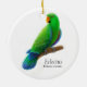 Conception originale de beaux-arts d'un perroquet vert d'Eclectus par le concepteur Carolyn McFann de l'ornement sur un bel ornement de vacances pour des amants de perroquet.