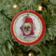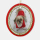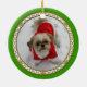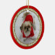 ornement mignon de Noël de chien de père Noël de tzu de Lhasa de tzu de shih. Cette belle image d'un tzu de shih ou d'un chiot d'apso de Lhasa habillé dans un équipement rouge de père Noël et le jeu dans la neige blanche regardera si mignonne sur votre arbre de Noël. Avec une frontière verte d'un côté et une frontière rouge de l'autre cette image encadrée par or est juste si jolie pour s'ajouter à vos décorations de vacances.