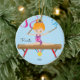 Personnalisez et ornement daté de Noël comportant un gymnaste rouge mignon de cheveux faisant une fente sur un faisceau d'équilibre réglé sur un arrière - plan bleu de pois avec un ruban #1. Un cadeau de Noël de merveille sure à priser depuis de nombreuses années pour venir.