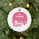 Cet ornement en céramique rond a un casque rose du base-ball avec le test maison d'énonciation écrit avec un base-ball comme o dans la maison. Vous pouvez facilement customiser ceci avec un nom et un nombre pour le joueur. La conception est sur l'avant et le dos de l'ornement. Graphiques par des conceptions de Zenware chez Mygrafico