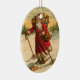 Arrière - plan de scène d'hiver de Milou avec le ski amical du père noël avec sa valise des jouets. Belle image vintage. Partagez les vacances avec ces ornements personnalisés de Nicholas d'entaille de saint, sûrs d'être un grand démarreur de conversation. Grand cadeau de Noël pour n'importe qui !