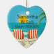 L'ornement TROPICAL de souvenir de MARIAGE comportant une scène de plage avec deux a barré des chaises de plage faisant face à la mer. Un coeur a été tiré entre elles dans le sable. Texte personnalisable. Ajoutez le nom des jeunes mariés, la date de mariage ou celui que vous aimez ! Perfectionnez le cadeau de fiançailles, ou pour le premier Noël de nouveaux mariés. Économies coordonnées les annonces, le magnet, les cartes postales, les autocollants, les étiquettes de adresse et l'affranchissement de date aussi disponibles. Original de PinkInkArt !