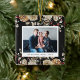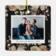 Ornement photo botanique. Célébrez la saison avec notre ornement de la collection de cartes de vacances de Noël Boho Noir Botanical. Avec un espace pour deux photos, une à l'avant et l'autre à l'arrière, cet ornement capture l'élégance festive. Personnalisez-le avec des photos chères et ajoutez une touche spéciale à votre décor de vacances.