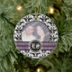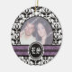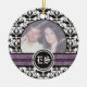 Ornement photo mariage damassé noir et blanc avec votre photo précieuse encadrée en noir et blanc damassé motif noir et violet bandes et vos initiales en cercle.