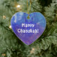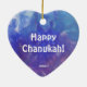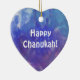 Cet ornement de coeur a une peinture de composition abstraite avec l'aqua, le bleu, blanc et pourpre et l'expression : "Chanukah heureux !" C'est un grand article de décoration de vacances pour votre pièce et un cadeau gentil pour votre amour ceux.