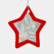Ajoutez votre petite étoile à ce cadre rouge de Noël sur un ornement en forme d'étoile. Il y a de la place sur le dos pour plus d'informations. L'avantage d'avoir des bords encadrés est que le cadre donne de la place pour redimensionner et déplacer la photo autour d'un peu pour recentrer le sujet. Une fois que vous avez ajouté votre propre photo, vous pouvez changer la taille ou le placement en choisissant "customiser".