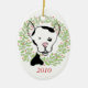Le chienchien repéré noir et blanc adorable Bow Wow a dirigé des oreilles un nez rose éclairant chaque arbre et décorations de vacances. Un motif chic et lunatique parfait pour des amoureux de les jardins. un unique, un d'un cadeau aimable pour vous ou votre aimé !