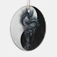 La conception sur cet ornement rond est un dragon chinois bleu soutenu par un symbole noir et blanc de Yin Yang. Un peu de fumée monte de la base de l'emblème de Yin Yang. Cette créature céleste, le dragon chinois est forte, aventureuse et sortante. C'est énergie est typiquement yang.
