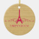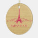 Élégant et chic, l'ornement de France Flourish est orné d'un arrière - plan à faux grain de bois et d'un design tour Eiffel en magenta orné de cascades de tourbillons élégants. Ce design girly et tendance est facile à customiser avec le texte personnalisé de votre choix. Cliquez sur "Customiser" pour trouver d'autres options de personnalisation.