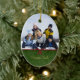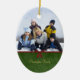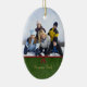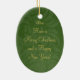Cet ornement en céramique ovale a une conception verte classique de remous avec un ruban rouge et l'arc sur l'avant. Vous pouvez facilement ajouter votre photographie de famille au dessus. Sur le fond, vous pouvez personnaliser ceci avec votre nom de famille. Sur le postérieur, vous pouvez customiser ceci avec une salutation et l'année.