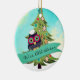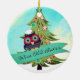 Hibou mignon avec la cuillère en bois avec un biscuit et arbre de bonhommes en pain d'épice sur cet ornement culinaire de Noël pour votre chef préféré de boulanger ou de pâtisserie de biscuit.