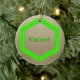 Des hexagones de charpente de fil aux couleurs "néon" indiquent la disponibilité de la pièce sur laquelle il est accroché. Un côté de médaillon a un hexagone vert avec le mot "Vacant" - L'autre côté a un hexagone rouge avec "Occupé". L'Arrière - plan est graphique de lin tan.