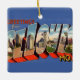 Une carte postale vintage du Missouri réutilisée sur un ornement. Gardez l'image sur le dos ou retirez-la et ajoutez votre message personnel.