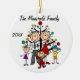 Un joli ornement de Noël en céramique de conservation ronde comprend une famille de figurines en bâton comprenant un père, maman, fille, garçon et petite fille devant un sapin décoré de Noël avec des zones que vous pouvez customiser avec votre nom de famille et l'année en cours! Ce joli ornement de gardien de vacances fait un grand cadeau pour la jeune famille de commémorer une année spéciale!