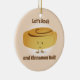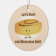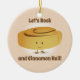Ornement avec un rouleau souriant de cannelle qui se tient entre les mots "Let’s Rock and Cinnamon Roll!". Les mots peuvent être customisés.