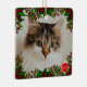 Remplacez la photo par une photo de votre animal de compagnie, encadrée dans le feuillage poinsettia par une annotation d'année de boule de Noël. Cadre carré.