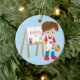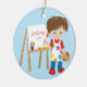 Petit l'ensemble mignon et lumineux d'ornement de Noël de garçon d'artiste sur une polka bleue a pointillé l'arrière - plan comportant un garçon de brune avec un chevalet et des peintures. Un cadeau de Noël de merveille sure à priser depuis de nombreuses années pour venir.