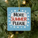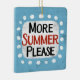 "Plus d'été S'il vous plaît" est un design de texte mignon en bleu avec du texte en noir et rouge, avec une forme d'accent blanc et des points blancs texturés blancs qui l'entourent.