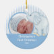 L'ornement mignon de Noël de photo comportant un éléphant bleu adorable réglé sur un arrière - plan rayé bleu et blanc, ajoutent juste VOTRE PHOTO ! Perfectionnez pour le premier Noël et le deuxième Noël. Un cadeau de Noël de merveille sure à priser depuis de nombreuses années pour venir.