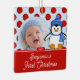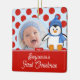 Joli ornement de Noël photo d'un adorable pingouin avec un arrière - plan rouge et bleu, juste ajouter VOTRE PHOTO! Parfait pour le premier Noël et le deuxième Noël. Un merveilleux cadeau de Noël qui sera chéri pendant de nombreuses années. ©zenware graphiques