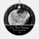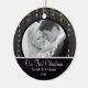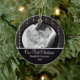 Notre premier ornement de Noël de photo comporte un bel arrière - plan rayé noir et blanc avec une bande noire ! Personnalisez avec votre information et date et vous sont tous placent pour aller ! Cadeau daté merveilleux de souvenir pour votre premier Noël et une grande addition à vous collection d'ornement de Noël.