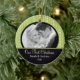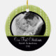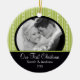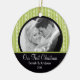 Notre premier ornement de Noël de photo comporte un bel arrière - plan noir et vert de rayure avec une bande noire ! Personnalisez avec votre information et date et vous sont tous placent pour aller ! Cadeau daté merveilleux de souvenir pour votre premier Noël et une grande addition à vous collection d'ornement de Noël.