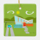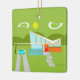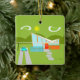 Cette rétro Chambre personnalisable de Palm Springs avec l'ornement de Noël de voiture est le rêve d'un amant moderne de la moitié du siècle. Les caractéristiques de conception minimalistes d'art une maison orange et en verre lisse avec un toit se renversant nettement de forme de trait de repère. La porte rouge compense le planteur en pierre orange rempli de verdure et d'écran décoratif d'intimité de cinderblock de turquoise. Les blocs de béton décalés forment le passage couvert parfait par la pelouse luxuriante et verte. Un parking blanc offre l'abri à une turquoise et à une voiture classique blanche des années 1950 avec des ailerons. La voiture est parfaite pour conduire autour du vert, montagnes arrondies dans la distance. La maison kitschy de style des années 1960 ressemble à une oasis louche du chaud, le soleil de Palm Springs. Le bord opposé est vert et peut être personnalisé. Ceci fait un grand cadeau de pendaison de crémaillère.