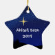 Cet adorable décor de Noël de la crèche met en vedette le bébé Jésus, Marie, Joseph, berger et mouton sur une belle étoile pleine nuit. Customisez le dos de l'ornement avec les noms et la date ou les détails de votre choix.