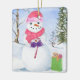 En Céramique Snowman avec foulard rose et ornement sucre de can