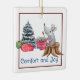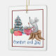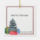 Cette petite souris fantaisiste se détend avec une tasse de thé et profite de son sapin de Noël. Le texte sur le devant dit "Confort et joie". Le texte à l'arrière peut être customisé.
