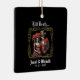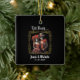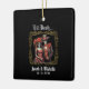 Célébrez l'amour éternel avec cet élégant ornement à double face Till Death. L'avant est orné d'une mariée gothique en squelette et d'une mariée encadrée d'accents d'art déco doré avec des roses rouges profondes, tandis que l'arrière affiche votre propre photo mariage spectaculaire pour une touche personnalisée. Parfait pour les mariages gothiques, les célébrations d'Halloween, ou les unions inspirées du Jour des Morts, ce gardien capture l'amour qui dure au-delà du temps. Personnalisez avec vos noms et la date pour un souvenir ou un cadeau éblouissant qui symbolise à jamais la dévotion avec un flair sombre et romantique.orné de couleurs vives, motifs ornés, et motifs floraux délicats. Leurs sockets oculaires sont ornées de motifs artistiques, et leurs sourires sont chaleureux et accueillants, malgré leur apparence squelettique. Cette représentation saisissante du couple squelette est enfermée dans un cadre doré opulent qui dégage une aura d'élégance et de célébration. Le cadre est élaboré avec des motifs en filigrane complexes et des détails ornés, ce qui augmente la richesse du design. Il brille d'une teinte métallique, lui donnant une qualité royale et intemporelle.