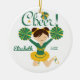Vert et ornement mignon de pom-pom girl de cheveux foncés d'acclamation d'or. Facile à personnaliser avec votre nom et date. Visitez notre magasin pour regarder cet ornement dans une grande variété de couleurs d'école et de couleurs de cheveux