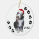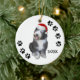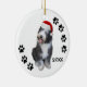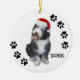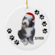 Photographie mignonne d'un vieux chien de berger anglais de bébé portant un casquette de Père Noël, et des empreintes de pattes le long des bords. Customisez immédiatement avec l'année utilisant nos outils simples de personnalisation. Vieil ornement anglais adorable de Noël de chien de berger !