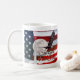 Coffee Mug avec In God We Trust compilation de photos de l'American Flag, un clocher d'église avec croix, un aigle à chaume volant, et la pleine lune rose. Vous recherchez plus d'impressions ou de produits ? N'hésitez pas à visiter mon magasin : http://www.zazzle.com/timelessmomentsphtgy Cette photo a été créée par Jennifer White with Timeless Moments Photography. Toutes les images sont protégées par copyright © Timeless Moments Photography/Jennifer White. Tous droits réservés.