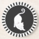 En Grès Chat chaton blanc mignon sur dessous de verre noir