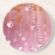 Image macro 3D d'un lustre en cristal. Des myriades de brins de perles de verre étincelantes attirent la lumière pour créer un joli bokeh dans l'arrière - plan. Les gouttes de verre floues se reflètent clairement dans les boules de cristal fortement focalisées au premier plan. Les branches d'or de la chandelle et l'atmosphère rose douce et les lumières donnent un coucher de soleil à la pièce. Créé en Vue.