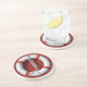 Photo d'un anneau de vie rouge et blanc suspendu centré sur le dessous de verre.