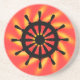 Roue du navire noir au-dessus d'une spirale jaune et rouge, au-dessus d'un arrière - plan de couleur solide (rouge - peut être customisé). Parfait pour ceux qui s'intéressent aux choses nautiques.