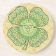 Ce trèfle classique de quatre feuilles recouvre une conception de cercle concentrique comportant des couches du Celtic tisse aux nuances multiples du vert avec un peu d'orange pour l'accent.