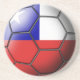 Le drapeau du Chili a gravé en refief à travers un ballon de football sur les dessous de verre absorbants de grès de l'eau. Grand comme cadeau pour des amants du football (le football).