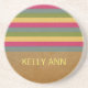 Dessous de verre Personnalisable Chic Textured Stripes. Ce design présente des rayures texturées sur un arrière - plan en papier brun en détresse. Ce dessous de verre grincheux mais de couleur vibrante peut être customisé avec un nom ou un autre texte personnalisé. Ne vous étonnez jamais de qui est encore celui qui boit !