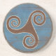 Des dessous de verre comportant la conception classique de Triskele de Celtic au-dessus de l'arrière - plan en bois admirablement patiné de bouclier de Viking.