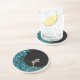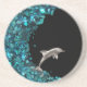 Dessous de verre faits sur commande de grès avec la conception aquatique de thème comportant un dauphin argenté sautant sur une vague bleue turquoise de fragments de coquille de paua.