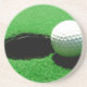 Boule de golf au bord de la tasse. Grand dessous de verre pour les amateurs de golf.