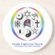 Les dessous de verre ronds avec le logo Pacifique d'église unitarienne entourés par 8 des mondes se spécialisent des religions.