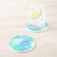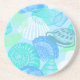 Le dessous de verre en grès est représenté avec un imprimé de coquillages colorés en bleu et vert. Customisez cet objet ou achetez tel quel. Image stock freepik.com