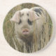 Ce joli dessous de verre en grès présente une belle photo d'un mignon cochon rose émergeant d'une grande herbe.