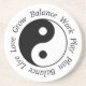 Équilibre - amour vivant de plan de jeu de travail développez-vous - dessous de verre de grès avec le lettrage de manuscrit et le symbole noirs de yang de yin.