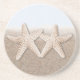 Échouez les dessous de verre de thème, avec deux étoiles de mer dans le sable. Customisez avec votre propre texte si vous souhaitez.